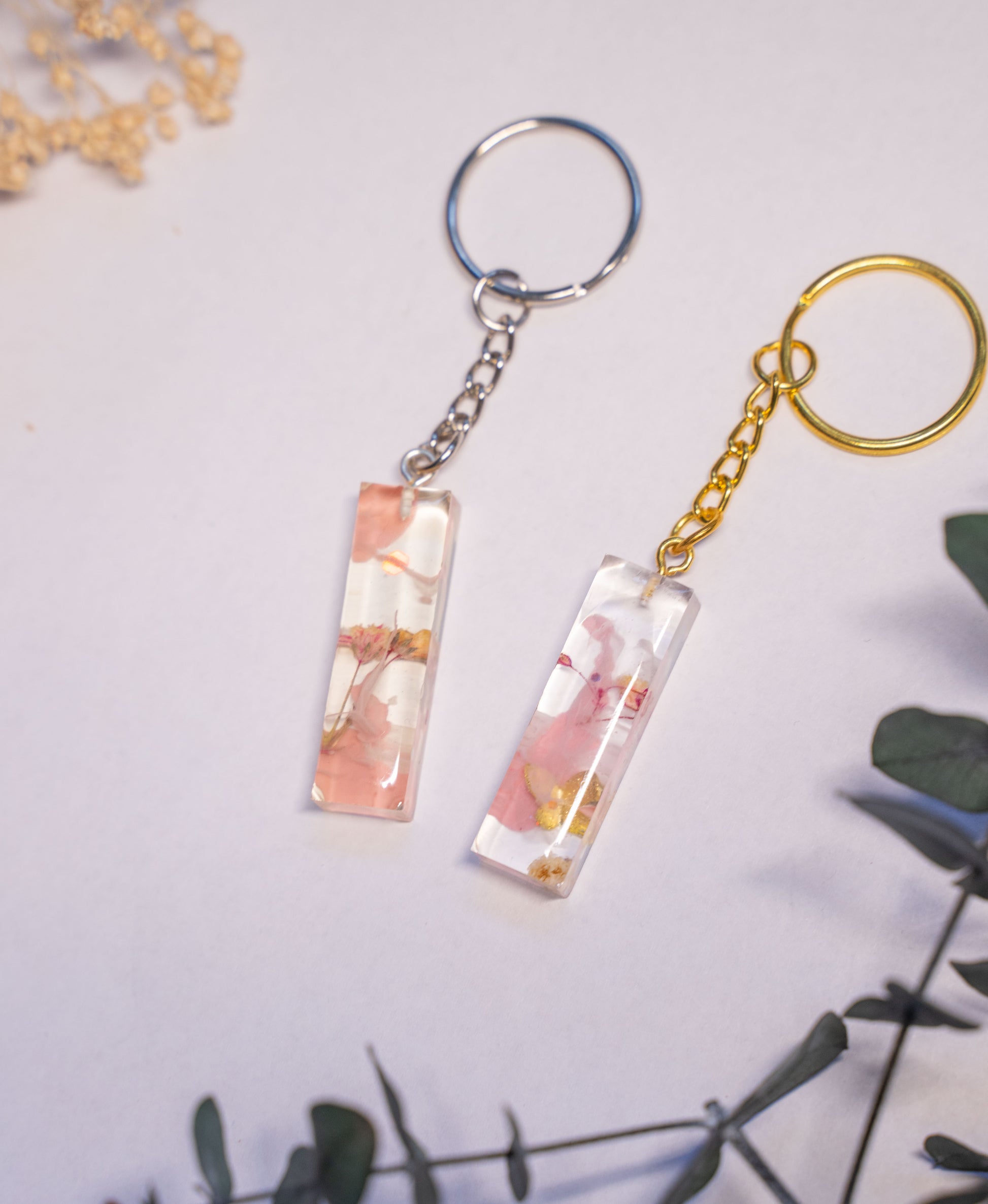 Epoxidharz ist eine Art Kunststoff. Die Produkte werden von Hand gegossen und mit Farben und Dekorationen, wie auch echten Blumen, veredelt.