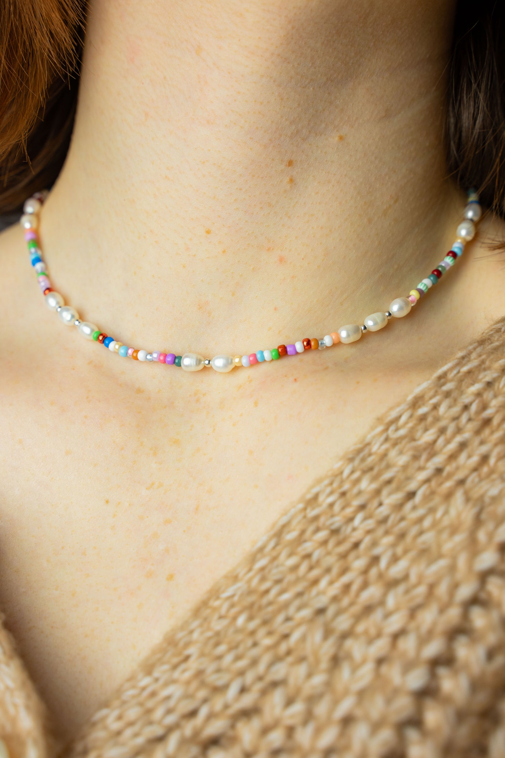 Regenbogenperlen gemischt mit echten Süßwasserperlen. Der perfekte Look für Deinen Sommer!